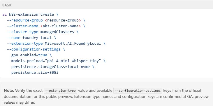 - Azure Arc extension para Foundry Local: Gerenciamento, configuração, updates e workloads de governança simplificados através do portal do Azure.