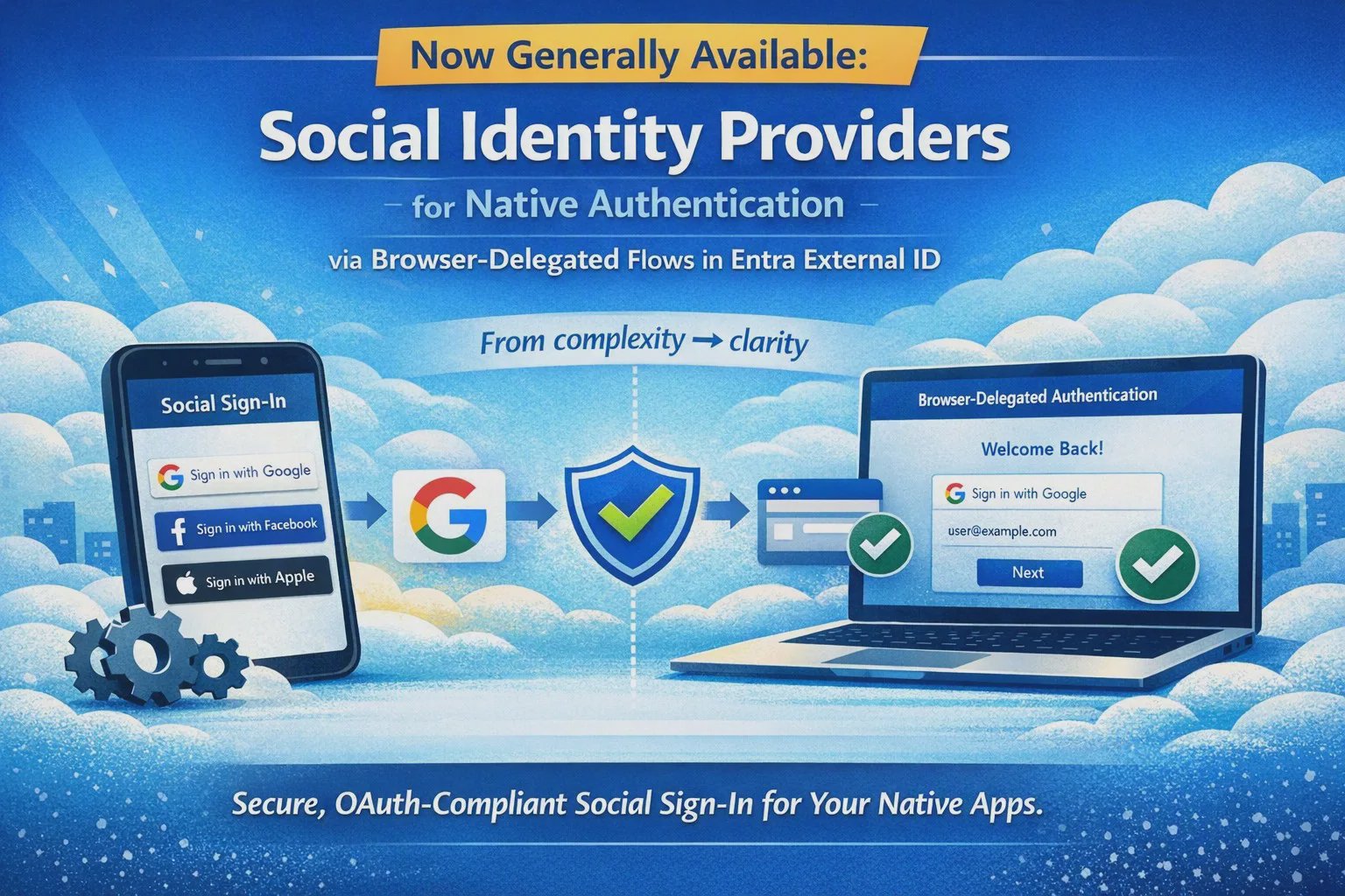 A Microsoft anunciou recentemente a disponibilidade geral (GA) do suporte a provedores de identidade social (Social IdPs) dentro da arquitetura de Native Authentication no Microsoft Entra External ID. Para times de engenharia e arquitetos de soluções, este movimento é estratégico: ele permite a integração de logins via Google, Facebook e Apple sem sacrificar o controle sobre a interface do usuário.